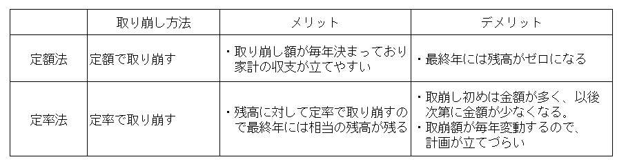 このため、定率取崩しの場合は5~6%程度に率を上げるなどの工夫をするのも一つの方法になります。